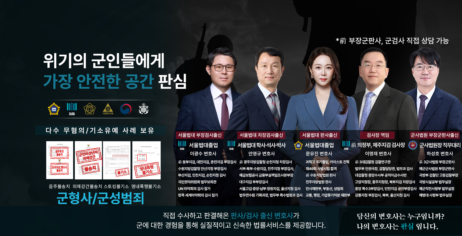 의뢰인의 군 신분과 명예, 군 전담 출신 변호인단이 실력으로 사수하겠습니다.